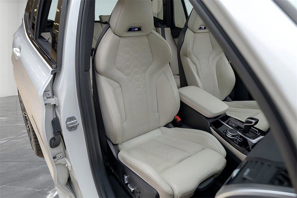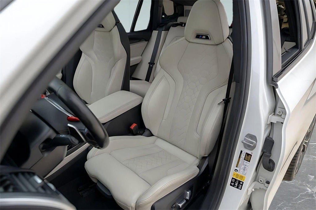 LOADED UP X3 M WITH DRIVER ASSIST, EXECUTIVE, M DRIVER’S PACKAGE, AND MUCH MORE. CALL IN ADVANCE TO SCHEDULE AN APPOINTMENT 248-970-7946. Alpine White over Ivory White Extended Merino Leather, Driving Assistance Plus with ACC Stop & Go and Active Driving Assistant, Extended Collision Mitigation, Executive Package, Heated Steering Wheel, Rear Manual Side Window Shades, Front & Rear Heated Seats, Parking Assistant Plus, Head-Up Display, Wireless Charging, Gesture Control, Rear View Camera, 21 V-Spoke Bi-Color 765M Wheels, Comfort Access Keyless Entry, High-Gloss Roof Rails, Panoramic Moonroof, Privacy Glass, Rear Seat Back Adjustment, Lumbar Support, Storage Package, Front Ventilated Seats, Grey Poplar Wood Trim, Adaptive Full LED Lights, Active Protection, Decoding for No-Dazzle High Beam, SiriusXM Satellite Radio, Harman Kardon Surround Sound, Connected Package Pro, Apple CarPlay & Android Auto, M Sport Seats, M Driver’s Package.