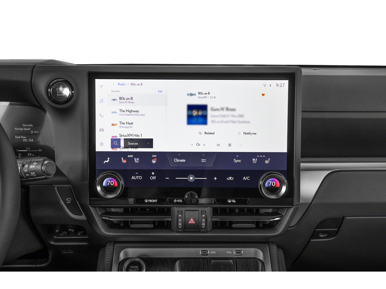 • Radio: Lexus Interface w/14" Touchscreen -inc: 10 speakers, wireless Apple CarPlay integration, Android Auto compatibility, Safety Connect (up to 10 year trial), Service Connect (up to 10 year trial), Remote Connect (3 year trial), Wi-Fi Connect (up to 30 day/3 GB trial) and Drive Connect w/Cloud Navigation, Intelligent Assistant and Destination Assist (3 year trial)